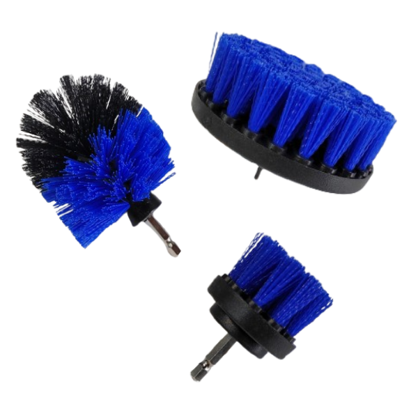 Kit de 3 unidades de cepillos para taladro, ideal limpieza de alfombras, gomas, etc. Los pelos son de dureza media.
